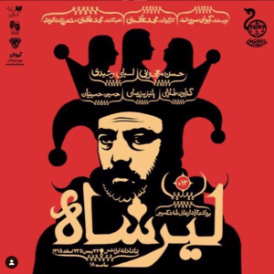 King Lear is a free adaptation of Shakespeare's play by Keyvan Sarreshteh. It starred the acclaimed theater actor, Hassan Majooni, and Leili Rashidi. The production was on stage for a month in Tehran in February 2017.